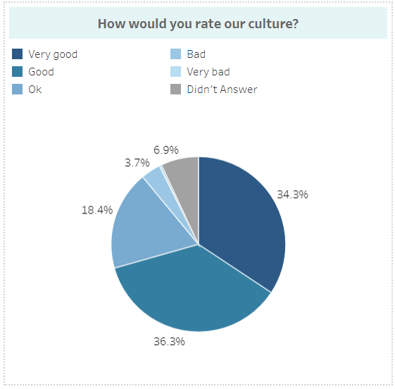 • A total of 70.6% of employees described the company culture as either ‘very good’ or ‘good’.