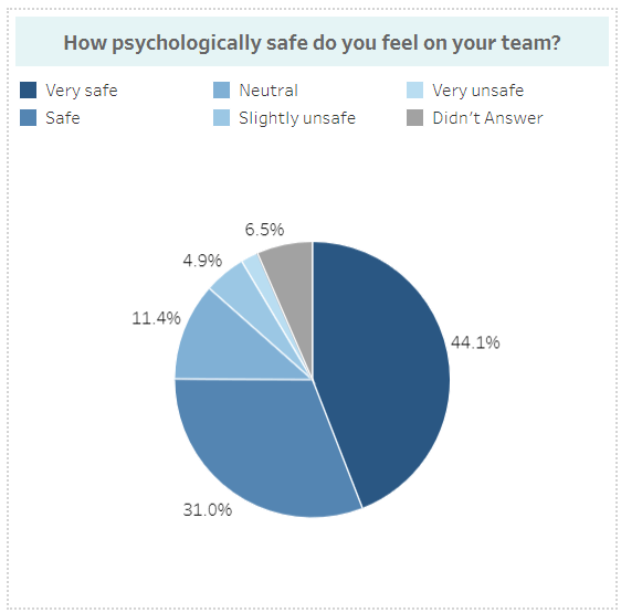• A total of 75.1% of employees reported feeling ‘very safe’ or ‘safe’ within their team.