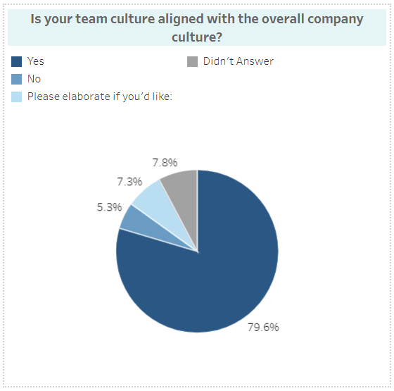 • A total of 79.6% of employees stated that their team culture aligns with the overall company culture.