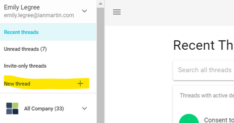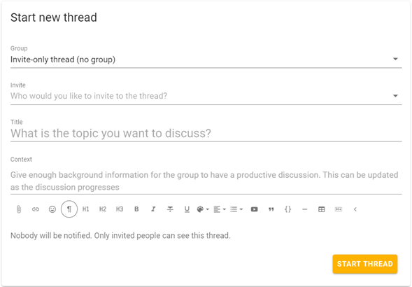 In Loomio, click on the “New Thread +” post option in the top left to start your own ‘invite-only’ RAP thread.